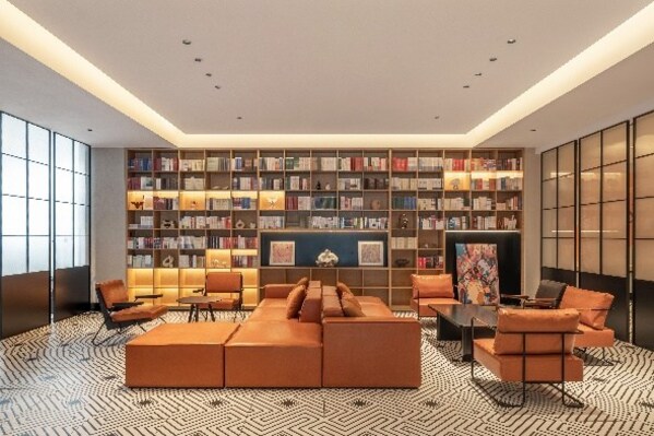 步入酒店,同派标志性的"蜂箱"大堂即刻唤醒空间活力。这一集前台、办公、休闲和社交于一体的复合场域,以开放式布局打破传统酒店边界,鼓励自然交流与灵感碰撞。无论是短暂停留还是深度工作,每位宾客都能在此找到属于自己的节奏。在"蜂箱"一隅,一方静谧书吧悄然铺展泉城文脉。这里精选济南历史、泉城文化、老街巷记忆等主题书籍,如同一扇可翻阅的城市之窗。一杯咖啡,几页文字,宾客在轻松休憩中与济南的过去与当下温柔对话。