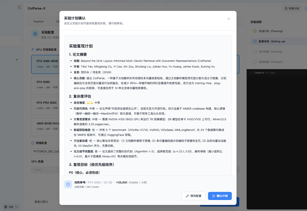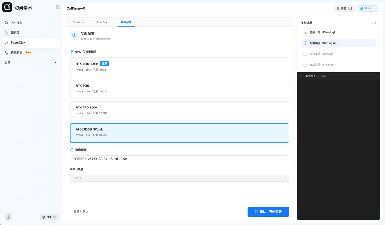 切问学术的诞生,正是要以AI智能体终结这种“体力活困局”。它不是又一款“更好用的搜索框”,而是一个能全自动理解论文、搭建环境、编写代码、执行实验、生成报告的AI智能体。给定其一个研究任务,切问学术就能在上述七大科研环节中实现闭环与自动巡航,科研人员只需在关键节点把控方向。