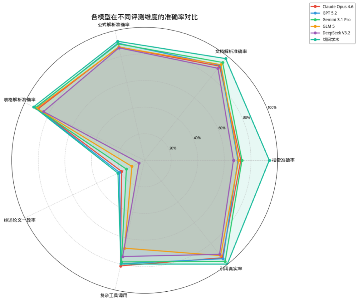 团队关于知识冲突的研究 ,入选了NeurIPS 2025 Spotlight,揭示了模型在记忆与现实冲突时的内部决策机制,为解决RAG“模型不听话”问题提供了理论支撑。关于AgentGym-RL 的研究则为AI智能体构建了涵盖27个真实场景的“实战演习场”,提出ScalingInter-RL(从易到难的课程学习),让模型自主探索进化,打到让开源模型性能匹敌商用闭源大模型的效果,被ICLR 2026 大会报告接收为Oral 。众多研究成果作为底座,最终让切问学术在第三方评测中的7个维度都交出碾压其他大模型的亮眼成绩单:搜索准确率(wispaper):93.78%(行业平均约70%),引用真实率(HalluLens-Cite):99.80%(接近零幻觉),文档解析准确率(ExtractBench):97.80%,公式解析准确率(OmniDoc-FR):91.79%。