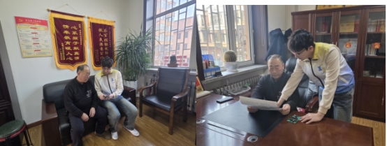 实践不走过场、服务精准落地,王一龙第一时间抵达对青村党群服务中心,与村党支部、村委会主任刘美顺及村“两委”班子成员开展座谈对接,详细介绍本次实践的目的与服务内容,全面了解村内村民居住分布、年龄结构、“三留守”家庭底数等基本情况,与村委会建立联动工作机制,为后续入户走访、志愿服务开展奠定坚实基础。