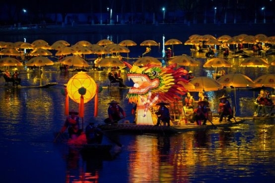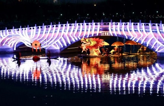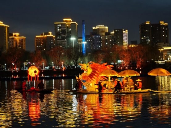 近日,华灯初上,北京亮马河国际风情水岸波光潋滟,一条流光溢彩的“金龙”静卧水面,龙脊映照着灯火,碧波间尽显磅礴气势。来自广西桂林阳朔的“金龙巡游”在这里精彩上演,承载着阳朔山水气韵与非遗匠心的“金龙”,让南北民俗文脉深度交融,续写了一场中国式浪漫。
