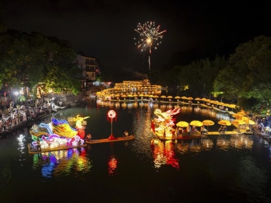 在阳朔匠人们的挥动下,水上龙舞腾挪灵动,岸边的光影、乐声与水声交织相融,勾勒出一幅古韵与新潮共生的唯美画卷,让在场市民沉浸式领略非遗民俗的独特魅力。以现代光影激活非遗生命力,让传统文化在都市水岸焕发新生,成为这场展演最动人的注脚。