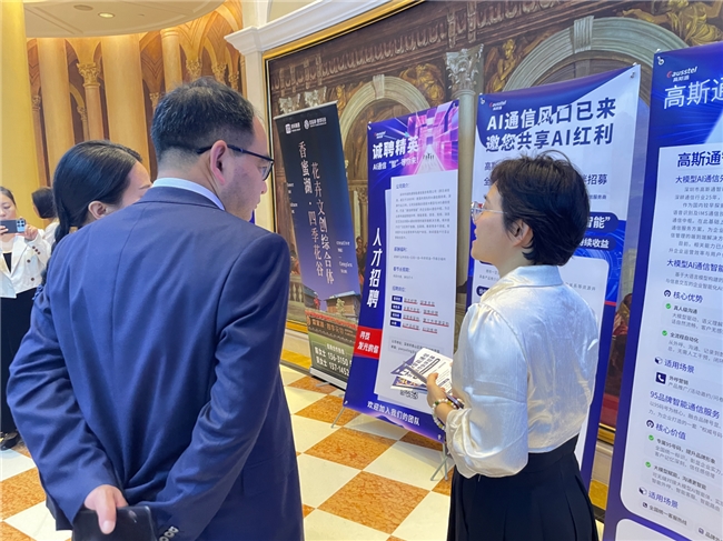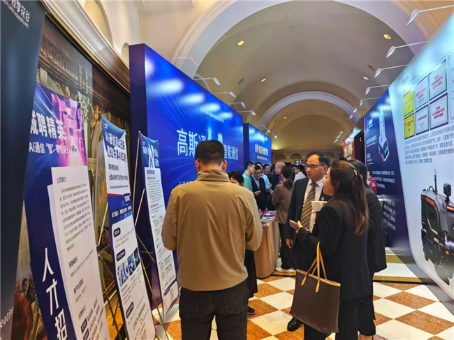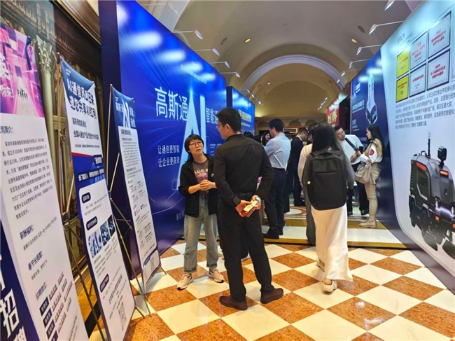 在论坛之外的校友企业展台区,高斯通智能通信展台人气持续高涨。工作人员通过现场演示,向校友们展示了AI通信智能体在智能外呼、智能客服、语音交互等场景的应用效果。校友们在体验产品的同时,围绕AI通信技术的商业落地展开深入交流。