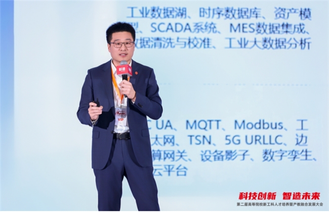 新道科技股份有限公司副总裁郑洪滨在会上以“数智共生产教融创——用友产业驱动的新工科人才培养实践”为题作主题报告。他表示,企业最想要的是知业务、精技术、会AI、懂应用、有品德的人才。随后,郑洪滨详细介绍了新道科技企业认知平台、工业控制技术、工业物联技术、标识解析技术、大数据技术、工业软件应用与开发、人工智能感知、人工智能决策、智能体应用、具身智能应用、智能制造、安全可控、考赛测评、数智科研、AI工具领域的产品和解决方案。同时,新道科技基于用友大量的大中型客户,开发了十大行业50大产业案例,让学生熟悉不同企业的典型应用场景。他介绍,新道科技将携手院校在全国建设30个用友企业数智化转型协同交付基地,基地是集认知、实训、研发、交付于一体的产教融合阵地,构建认知-实践-创新-交付的阶梯式培养模式,形成完整人才培养闭环。