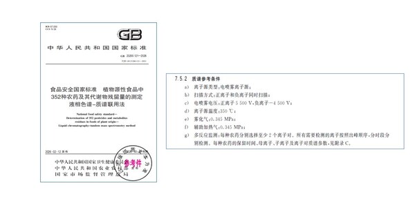 食品安全无小事,国家卫生健康委员会、农业农村部及国家市场监督管理总局联合发布最新标准《植物源性食品中352种农药及其代谢物残留量的测定液相色谱-质谱联用法》(GB23200.121-2026),该标准基于SCIEX质谱系统TripleQuad™4500在GB23200.121-2021原有331种农残检测项目的基础上进行完善和扩充,检测范围扩展至352种化合物,标志着我国农药残留检测技术体系的进一步完善。这一修订充分体现了我国食品安全监管体系与时俱进的科学态度,也为现代农业绿色可持续发展提供了坚实保障。