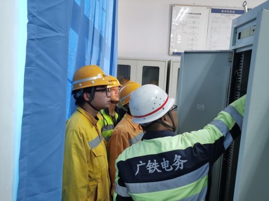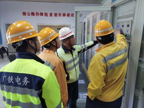 巡检人员与3名青工在查看电源屏 (黄金水 摄)