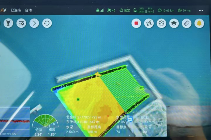遥控器显示无人船按照航线采集数据