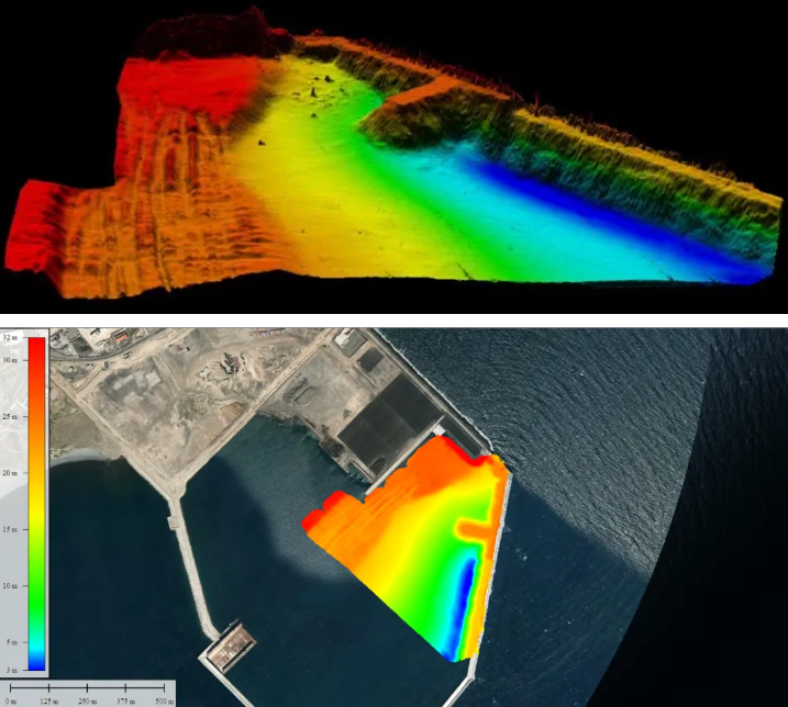 在菲律宾巴科洛德港15m水深的测量中,HQ-400一次航测即获取连续高密度点云,数据内符合精度高达99.69%,满足IHO特等标准;在西班牙克里特港约40m的复杂深水区,系统依然稳定输出精准数据,港底抛锚痕迹清晰可辨,为分析船舶活动与地形演变提供第一手资料。