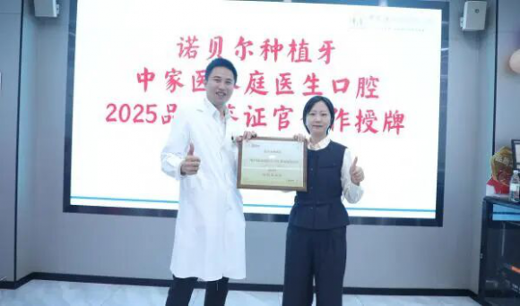 近日,广州中家医家庭医生口腔与瑞典诺贝尔种植牙品牌联合举办的“品质鉴证官”授牌仪式在医院隆重举行。活动同步开展口腔健康宣讲、患者访谈及互动环节,吸引众多市民到场参与,共同见证此次围绕种植牙品质与安心体验的合作升级。本次授牌也标志着广州中家医家庭医生口腔在高端种植体应用与国际标准种牙服务领域迈出重要一步。