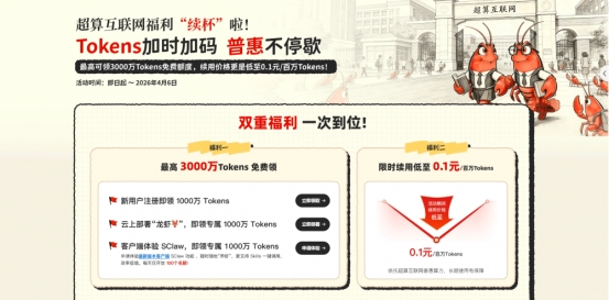 “自今年2月,超算互联网核心节点邀测计划上线以来,已吸引近4000位高校、科研院所、企业的用户申报参与,包括智谱、讯飞等国内一线大模型企业;本月养龙虾兴起后,超算互联网面向全体用户发放的免费词元(Token),都是依托的核心节点的超智融合算力”,曹振南介绍,为了让科研人员长期普惠的用智能体做创新,4月6日前,平台向每位用户免费发放最高3000万词元额度,且续用价格继续低至0.1元/百万词元。