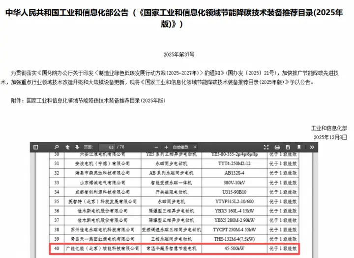 广能亿能核能节能电机入选国家推荐目录 彰显工业绿色技术创新实力