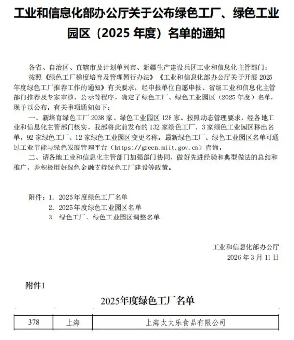 太太乐入选国家工信部绿色工厂名单,树立行业“绿色制造”典范