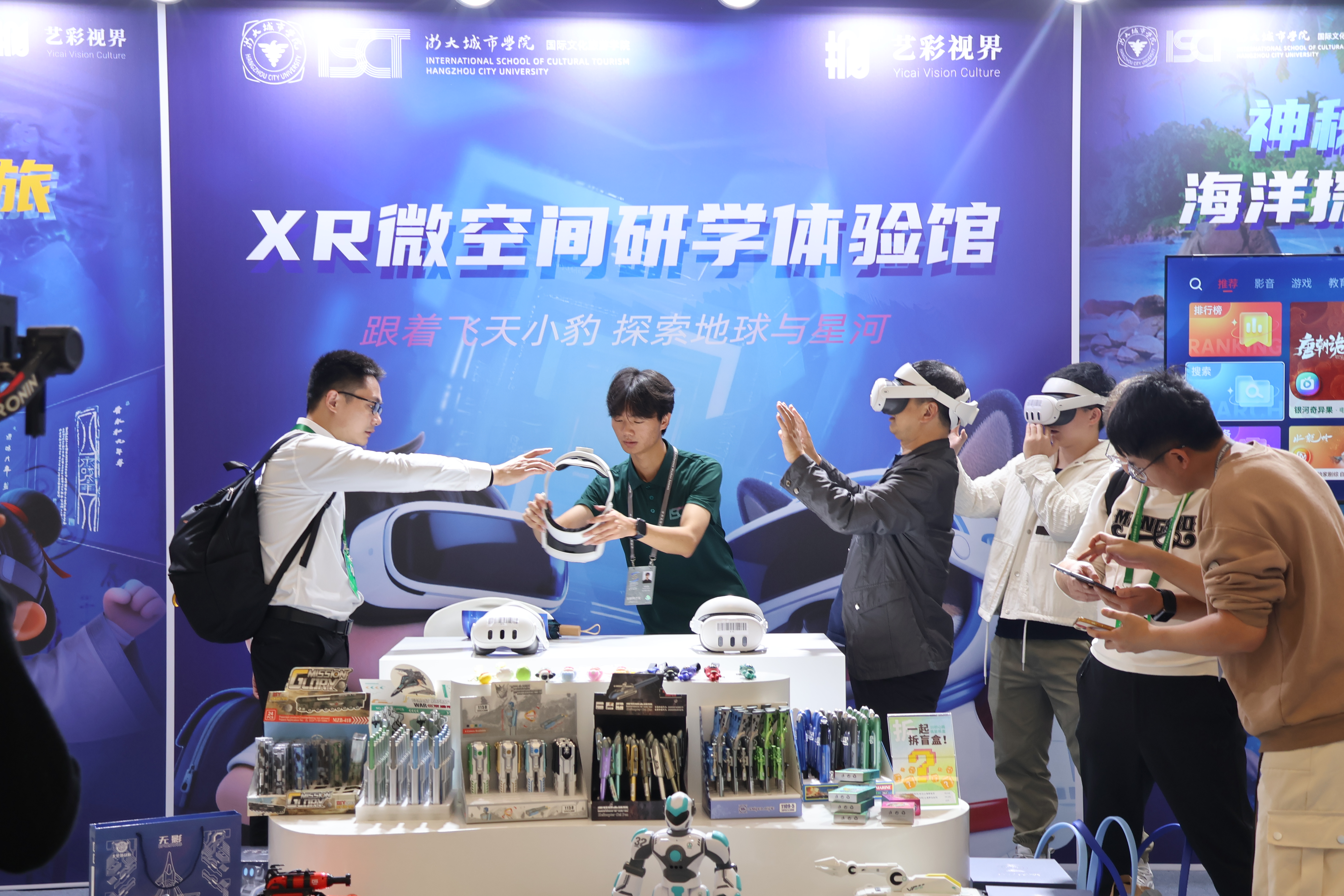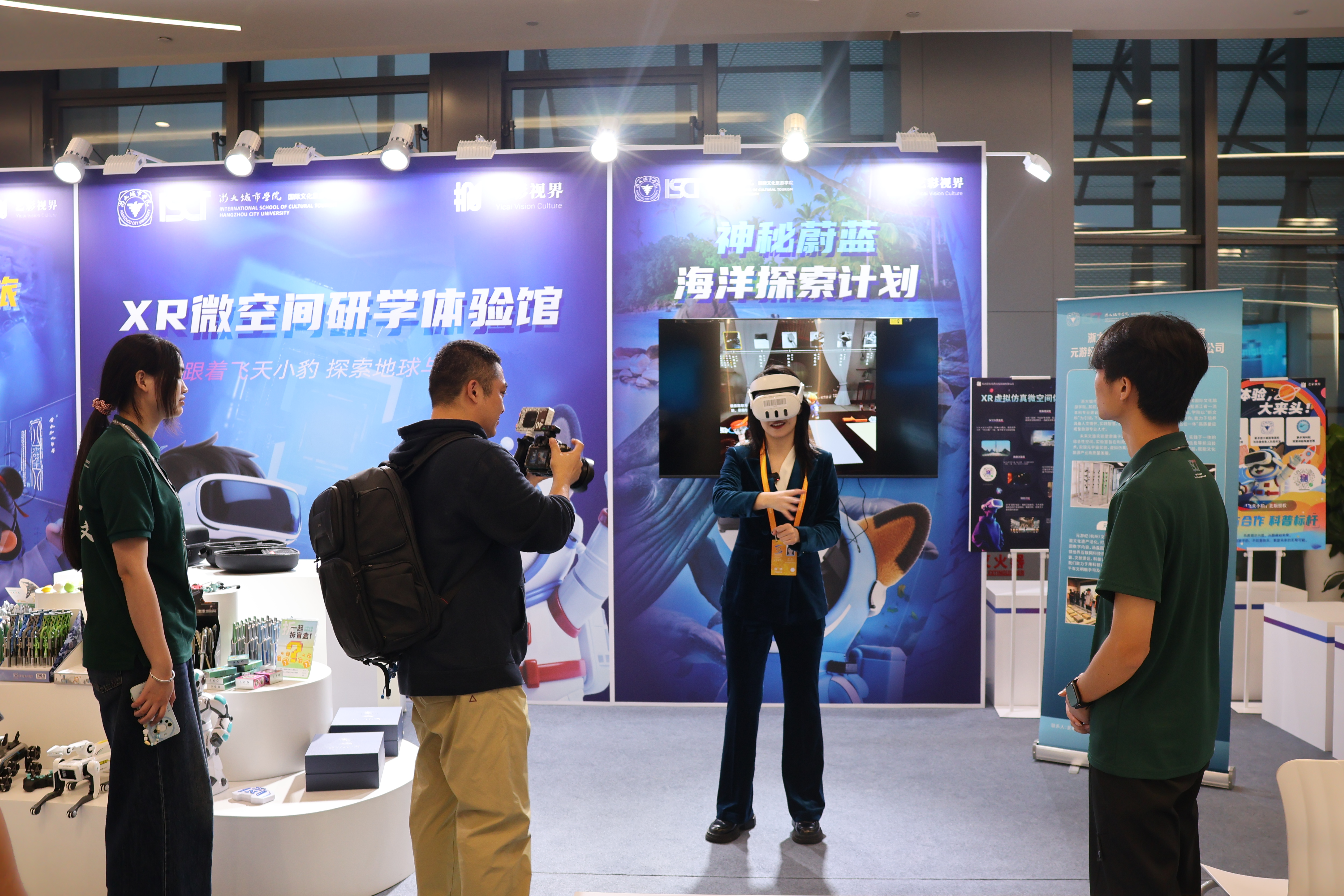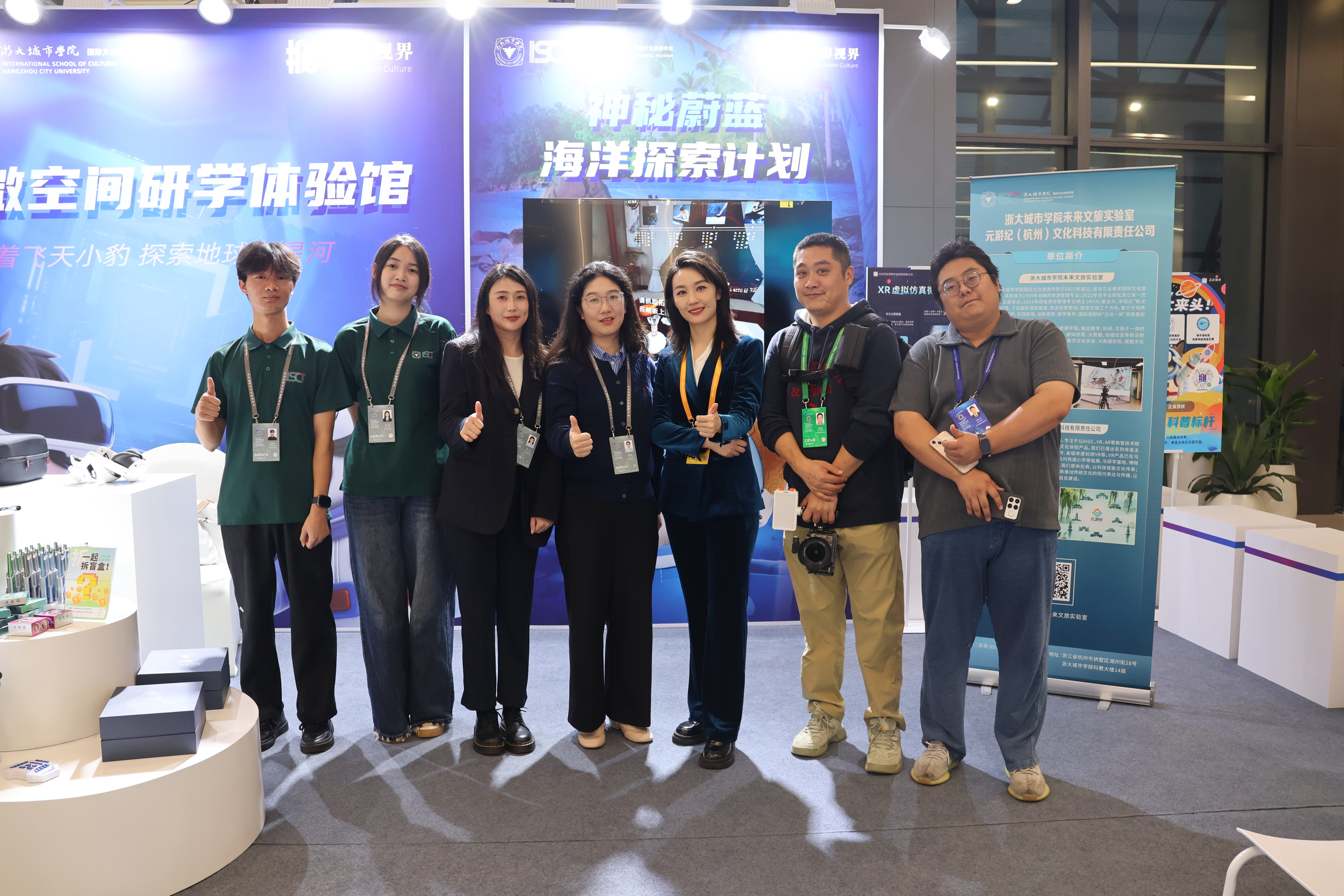 “元游纪”团队是浙大城市学院国际文化旅游学院以项目为载体推动成果转化并成功孵化出的一支大学生创新创业团队。团队聚焦非遗数字化领域,全面负责VR体验项目迭代研发、衍生文创产品开发与销售、研学体验课程设计与实施等,形成 “技术研发—成果转化—产业运营”的闭环体系。