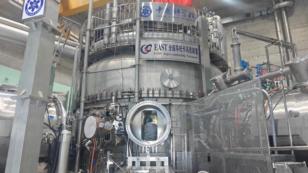 “十四五”时期,EAST先后实现稳态高约束模式等离子体运行101秒、403秒等世界纪录。今年1月20日下午,EAST创造“亿度千秒”世界纪录,这意味着装置以超过1亿摄氏度的高温稳定运行了1000秒,在实验装置上首次模拟出未来聚变堆运行所需的环境。