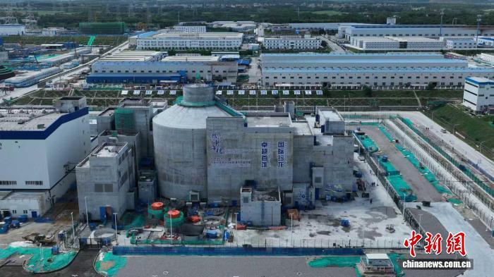 12月23日,全球首个陆上商用模块式小型堆“玲龙一号”完成非核冲转试验。图为航拍“玲龙一号”。中核集团海南核电有限公司供图