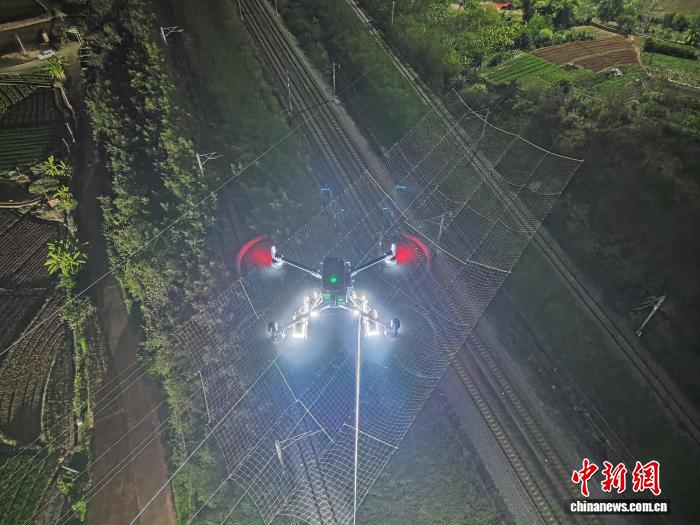 此外,由于施工现场跨越3条铁路,建设团队应用重载无人机组建“空中照明队”提升施工物资运输效率,并使用“移动照明设备+系留照明无人机”搭建“陆空灯塔”体系,破解夜间施工照明难题。