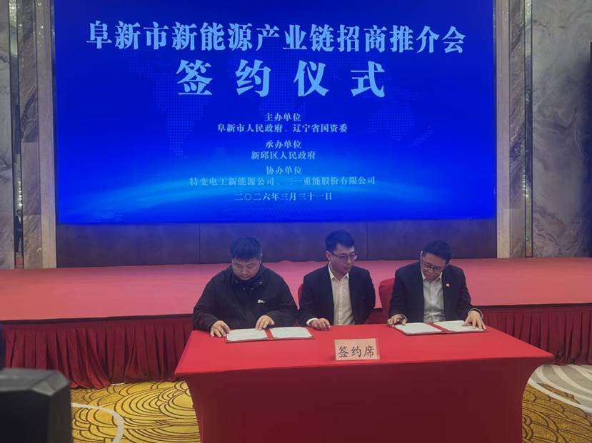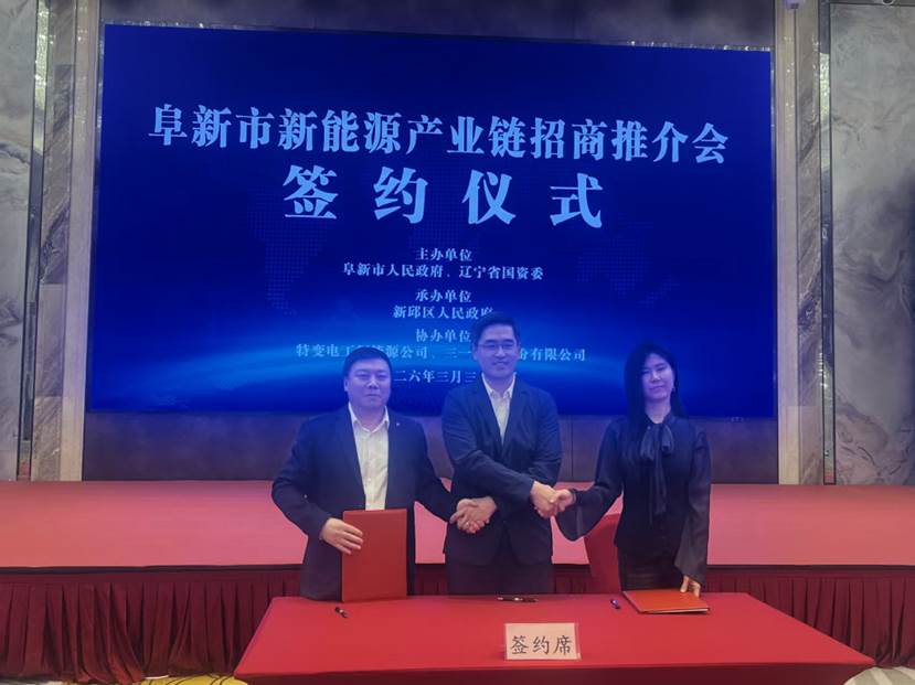 (2026年3月31日阜新)玉龙故乡春潮涌动,绿电产业风劲帆满。3月31日,阜新市新能源产业链招商推介会隆重举行。特变电工逆变器项目、三一重能发电机项目同日竣工投产、新产品顺利下线,两大龙头项目同步落地、双耀阜新,为这座全国首个资源型城市经济转型试点市新能源产业高质量发展注入强劲动能。省市领导、央企国企、知名民企及产业链合作伙伴、金融机构与新闻媒体嘉宾齐聚一堂,共话合作机遇、共谋发展新篇,政企携手共绘新能源产业集群发展新蓝图。