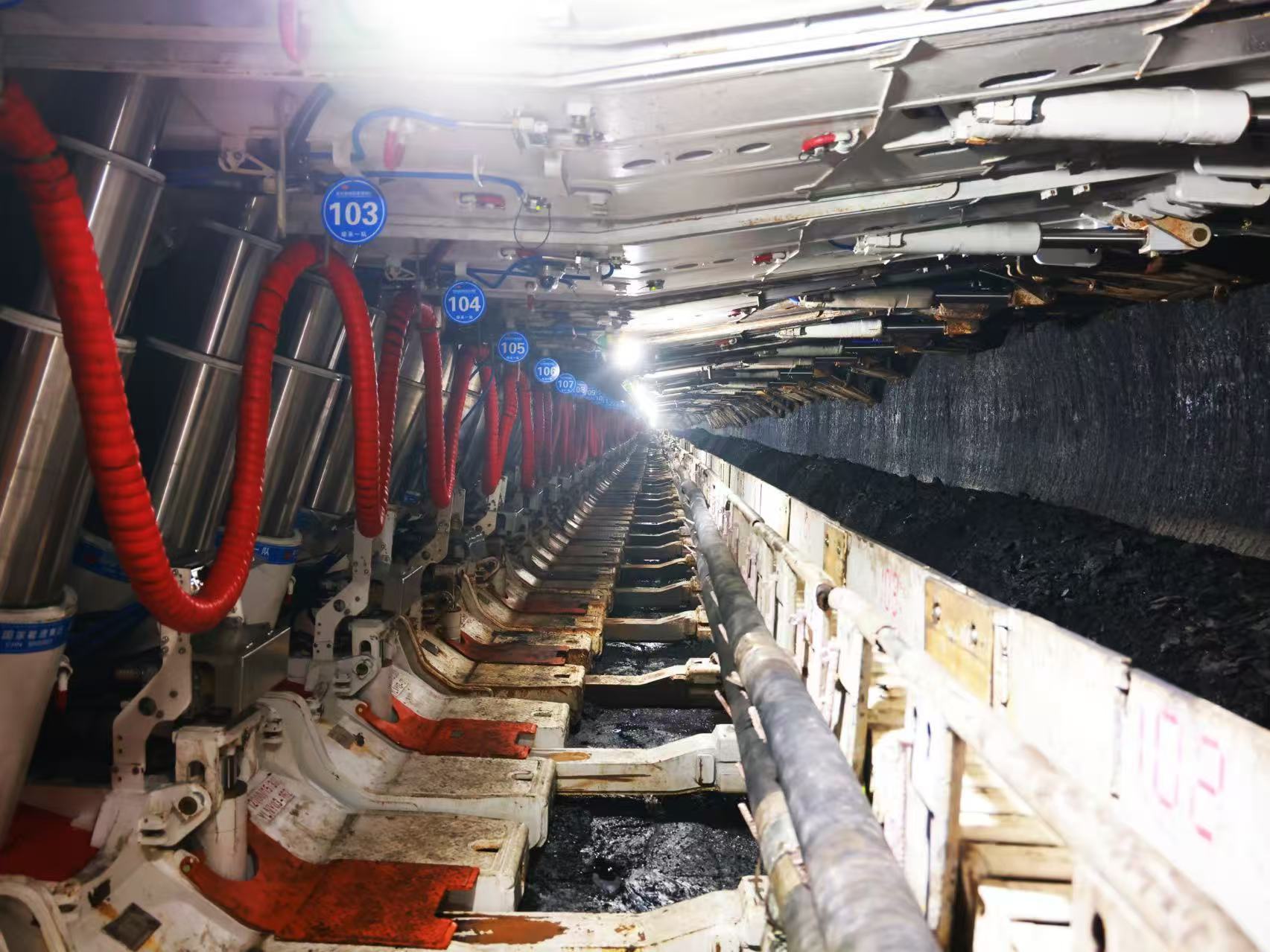 51210超长综采工作面平均采高2.8米,配套286台支撑掩护式液压支架,刮板输送机长度达502米;内置的采煤机、支架、运输机等装备兼具截割、装运、支护等优点,可满足高效稳定生产需求。