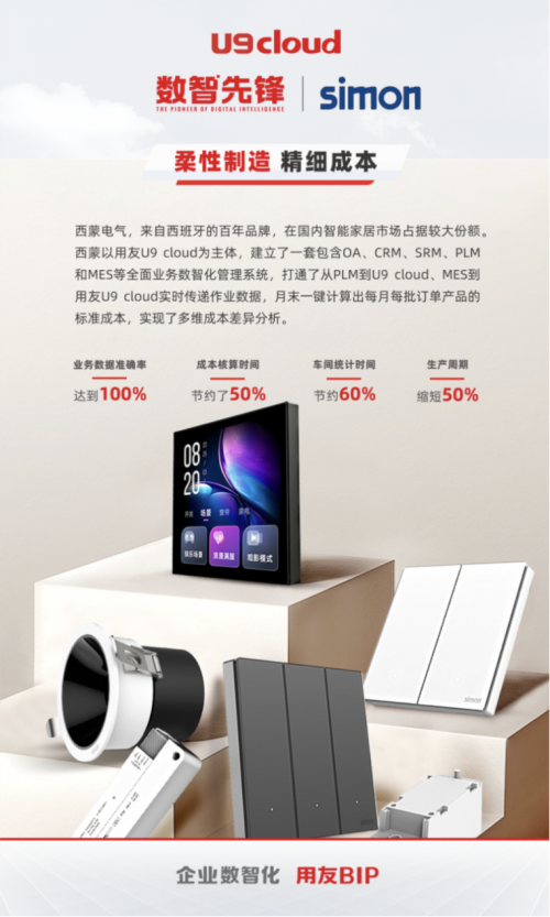 当西蒙电气的开关在亿万面墙上亮起,没人看得见云端的数据也在“合闸”——那条由U9cloud铺就的隐形电缆,把生产效率的提升、管理成本的降低、业务模式的创新直接接入了“未来插座”。