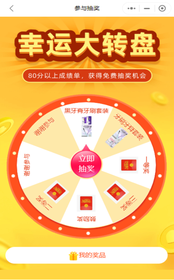 只要你足够优秀(满80分就有抽奖机会;星级越高抽中大奖几率就越高),红包、礼品随你拿,不限时、不限量!