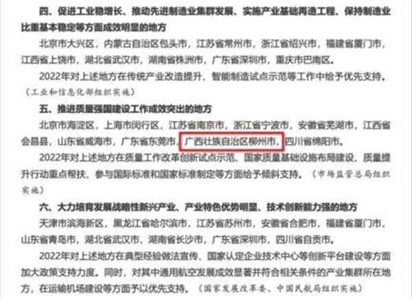 6月2日,国务院办公厅通报2021年落实有关重大政策措施真抓实干成效明显地方督查激励,柳州市因推进质量工作成效显著,成为广西首个“推进质量强国建设工作成效突出地方”上榜城市,荣获国务院督查激励。