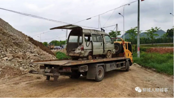 时间要回到6月2日。上午9点10分左右,柳城县沙埔镇党委书记覃建球接到莫文深的电话,称其项目施工工地进出口被一辆废弃车辆堵住。