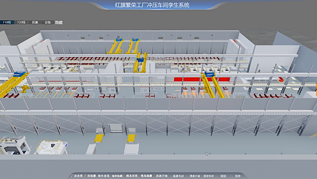 一汽红旗繁荣工厂中近2万台设备实时在线,实现了五大车间的数字孪生实时联动,是国内目前场景覆盖最完整、数据规模最大的汽车工厂数字孪生工程。在国产自研的数据采集与监控平台上,算法帮助焊装车间实现了焊点合格判定准确率提升到97%;涂装车间的空调能耗节约9%,漆膜质量预测准确率提升到91%。