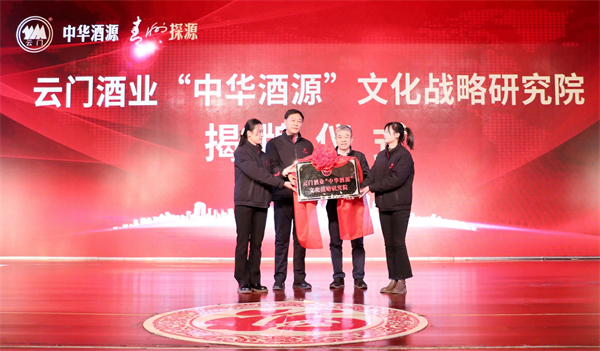 “中华酒源”文化战略研究院揭牌仪式也在会上隆重举行,中国酒业协会名誉理事长王延才和云门酒业集团党委书记、董事长汲英民共同为“中华酒源”文化战略研究院揭牌。