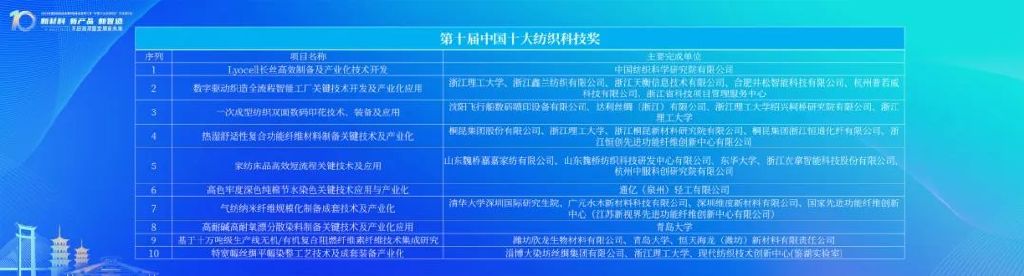 十年间,活动见证了纤维新材料的不断涌现和迭代进步,碳纤维、高强高模聚酰亚胺纤维、间位芳纶、聚苯硫醚纤维等高性能纤维实现快速发展,导电智能、速干凉感、绿色循环等差别化、功能性纤维材料竞相涌现,有力支撑了产业体系的重构与升级;绿色环保技术成果不断涌现,为纺织印染企业提供了高效节能减排解决方案,为我国纺织印染行业的绿色低碳发展作出重要贡献;纺织服装智造水平的不断提升,工业4.0与纺织装备深度融合,以数字化系统解决方案推动纺织行业数字化、智能化发展整体的质效提升。