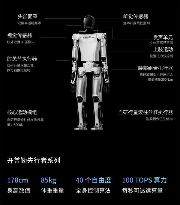 在本届CES亮相的开普勒先行者系列,从自研行星滚柱丝杠执行器、灵巧手、星云系统到应用场景、共创平台等,处处都体现了开普勒当前在人形机器人领域的核心竞争力。