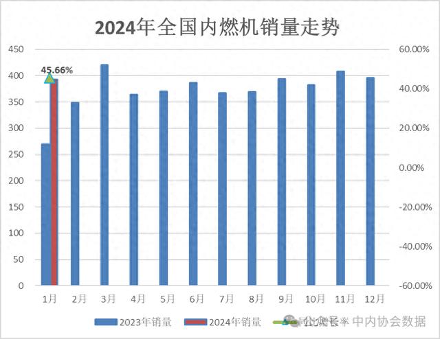 2024年1月内燃机行业销量环比小幅下降、同比增长。