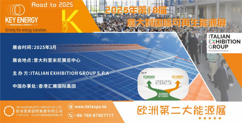 3月1号第18届意大利里米尼国际可再生能源展(K.EY)由知名主办方ITALIAN EXHIBITION GROUP S.P.A组织举办,每年一届,是欧洲第二大能源展,也是覆盖范围最全知名度最高的可再生能源展览会。