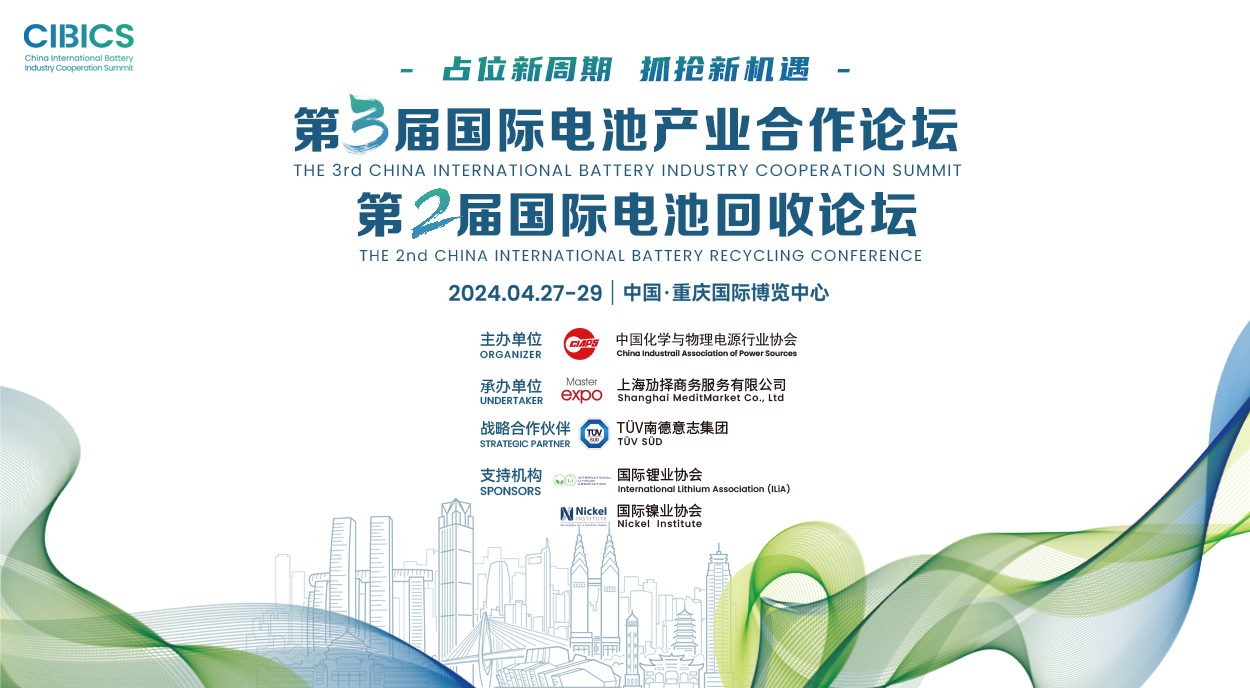 在全球能源转型和新能源汽车产业迅猛发展的背景下,由中国化学与物理电源行业协会主办、上海劢择商务服务有限公司承办的2024“CIBICS第三届国际电池产业合作论坛暨第二届国际电池回收论坛”将于4月27日至29日在重庆悦来国际会议中心隆重召开。此次论坛不仅汇聚了全球电池产业的精英力量,同频共振,共探发展,更是为未来全球产业合作提供前瞻视角。