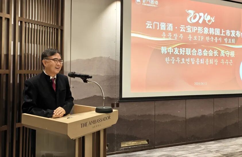 韩中友好联合总会会长禹守根作为中韩友好交流的重要嘉宾,在致辞中表示,中韩地缘相近、经济相融、人文相通,韩中友好联合总会愿意在更大范围、更高层次、更加系统地推进云门酱酒在韩发展,让云门酱酒成为连接中韩友谊的桥梁和纽带。