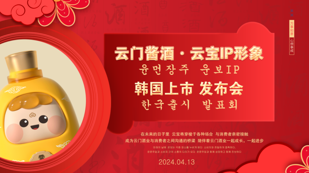 2024年4月13日,“云门酱酒·云宝IP形象韩国上市发布会”在韩国首尔铂尔曼大使酒店举行。出席此次发布会的领导和嘉宾有青州市经贸代表团、韩国社会各界朋友、中韩企业家代表、经销商代表、核心消费者、新闻媒体及在韩国的青州籍优秀人才代表。