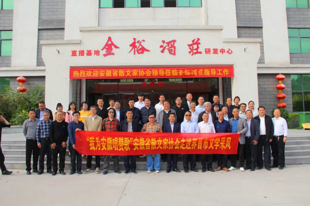 最美是人间四月的天,一江春水绿如蓝。4月20日下午,在这最美的人间四月天,安徽省散文家协会主席郭博一行四十余人,在安徽省散文家协会理事、阜阳市作协名誉副主席王瑞的带领下,走进金裕皖酒业,开展“我为安徽唱赞歌”安徽省散文家协会走进界首市文学采风活动。通过实地参观、交流风采,讲好界首“争当县域高质量发展领跑者”踔厉奋发的故事,展现安徽在新时代高发展的成果。