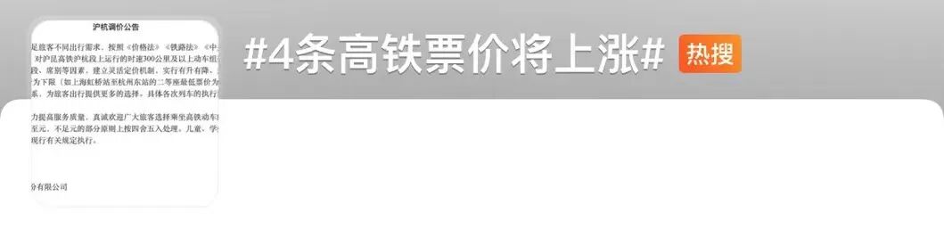 近日,“4条高铁票将上涨”话题,一度冲上微博热搜。