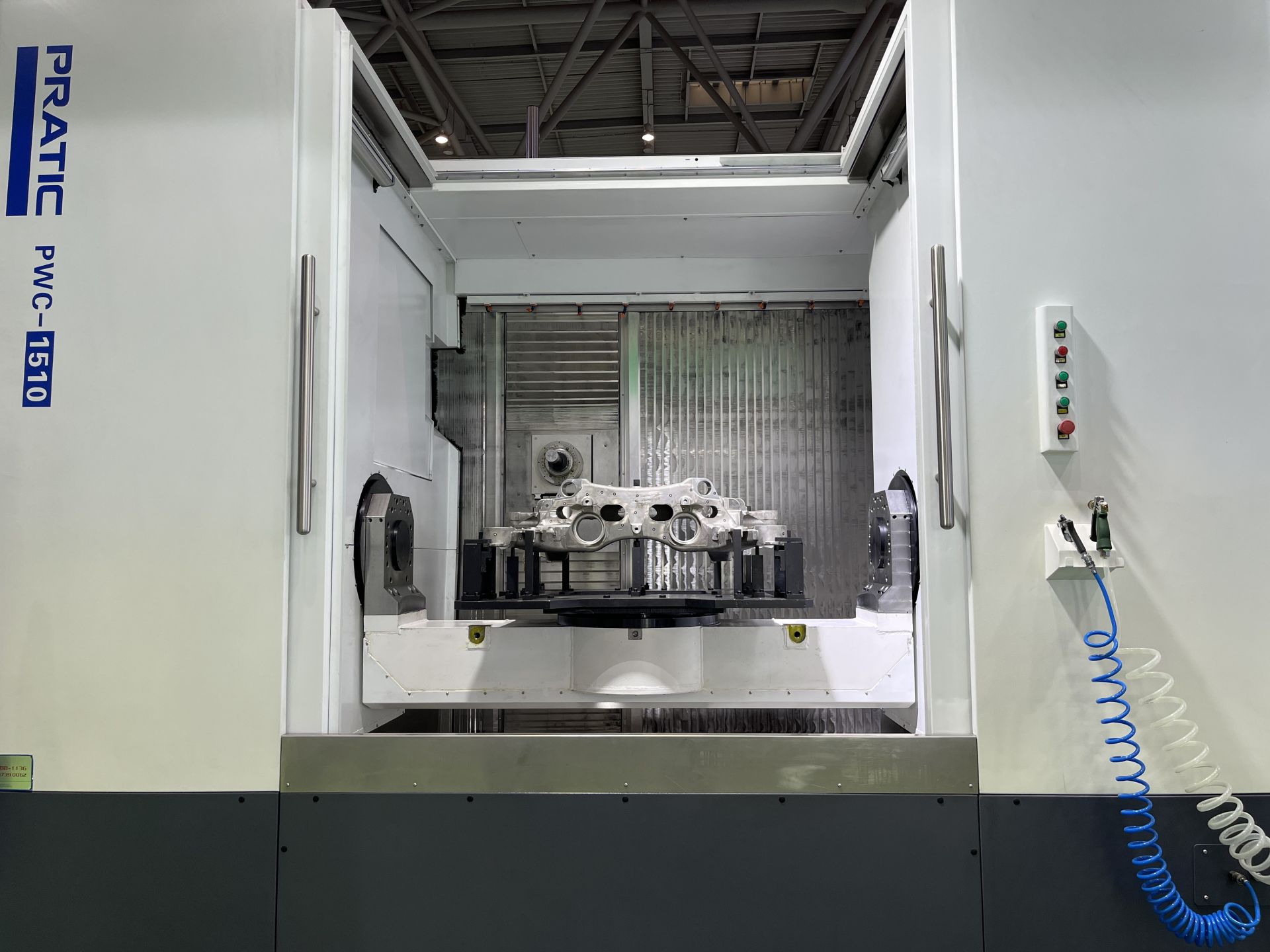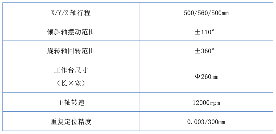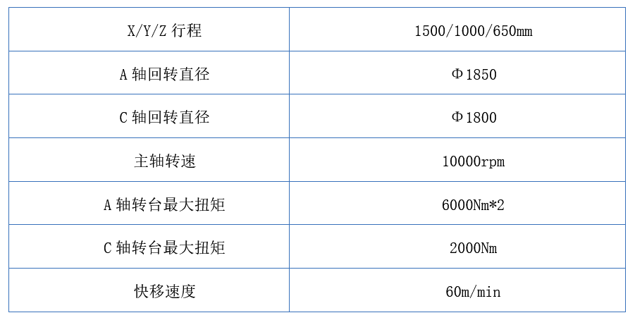 ·全直驱A/C五轴摇篮转台,A轴双电机驱动,最大扭矩可达到6000Nm,一次装夹可完成工件的多面加工。