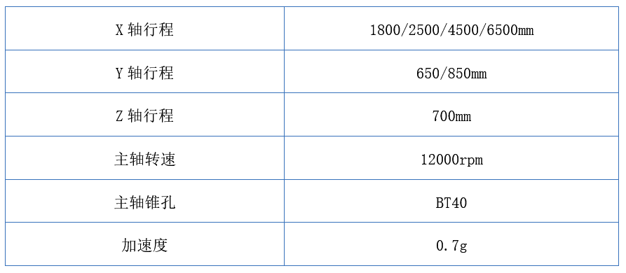 ·设备采用一体式U型床身工作台,所有运动轴都在床身左右两墙体上方搭配箱中箱结构的移动部件,有效提高了加工时机床的稳定性与刚性。