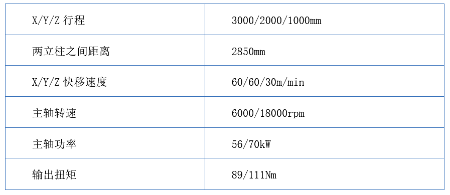 ·采用高功率大扭矩电主轴,保证良好的切削及加工能力,主轴转速10000rpm、主轴扭矩高达240Nm。
