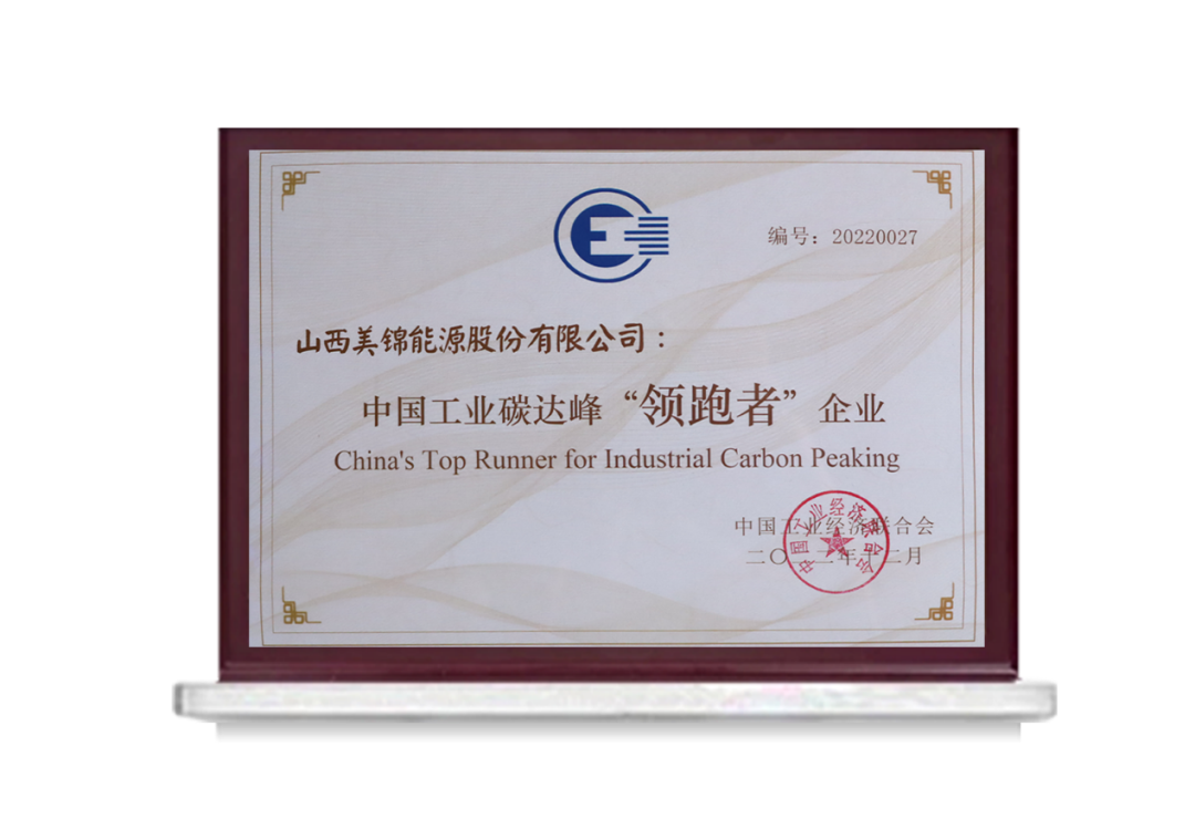 图1.美锦能源获中国工业碳达峰“领跑者”企业称号
