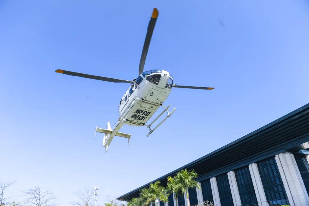 1月10日,在深圳坪山燕子湖会展中心,直升机起飞前往福田CBD。新华社记者毛思倩摄