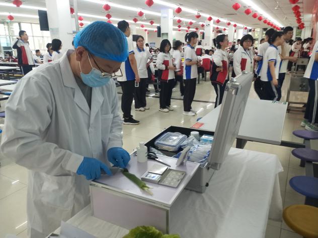 精心选派监管人员对保障点进行食材抽样检测,同时对供餐单位开展食品安全督导检查。现场对15类食用农产品全部品种进行抽样,确保所有原料安全可控,检测合格率达到100%。
