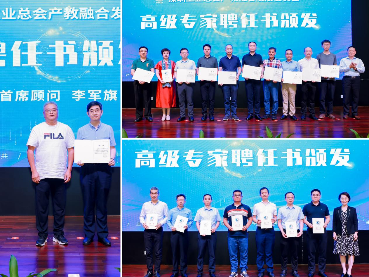 在聘书颁发环节,深圳工业总会产教融合发展委员会聘任了首席顾问和首批20位产教融合高级专家。