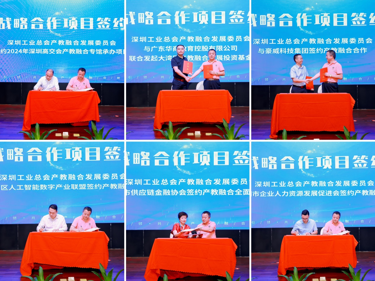 在签约环节,深圳工业总会产教融合发展委员会与深圳高交会产教融合专馆承办方签订了展会承办合作战略协议,与广东省华商教育控股有限公司签订了联合发起大湾区产教融合发展投资基金项目合作协议。深圳工业总会产教融合发展委员会还与豪威科技集团、大湾区人工智能数字产业联盟、深圳市供应链金融协会、深圳市企业人力资源发展促进会签订了产教融合战略合作协议。这些战略合作项目的签订,将有力推动产教融合生态模式的落地践行。