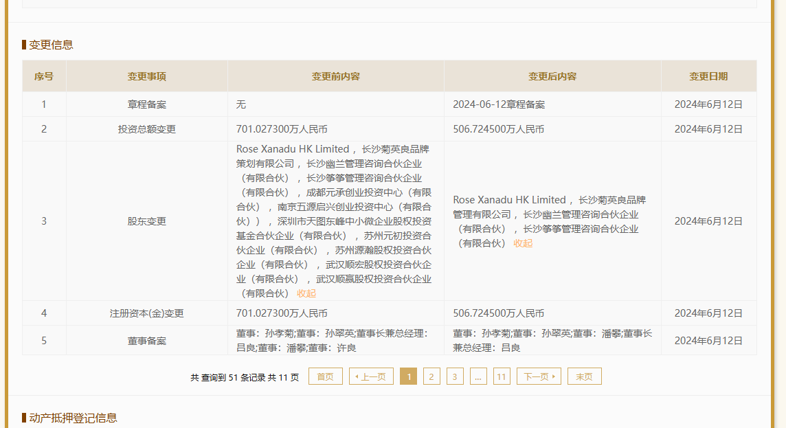 此外,今年2月,股东成员中新增一家香港公司RoseXanaduHKLimited,其持股比例1.38%。股东退出的同时,茶颜悦色的注册资本由约701万元减至约506.7万元。