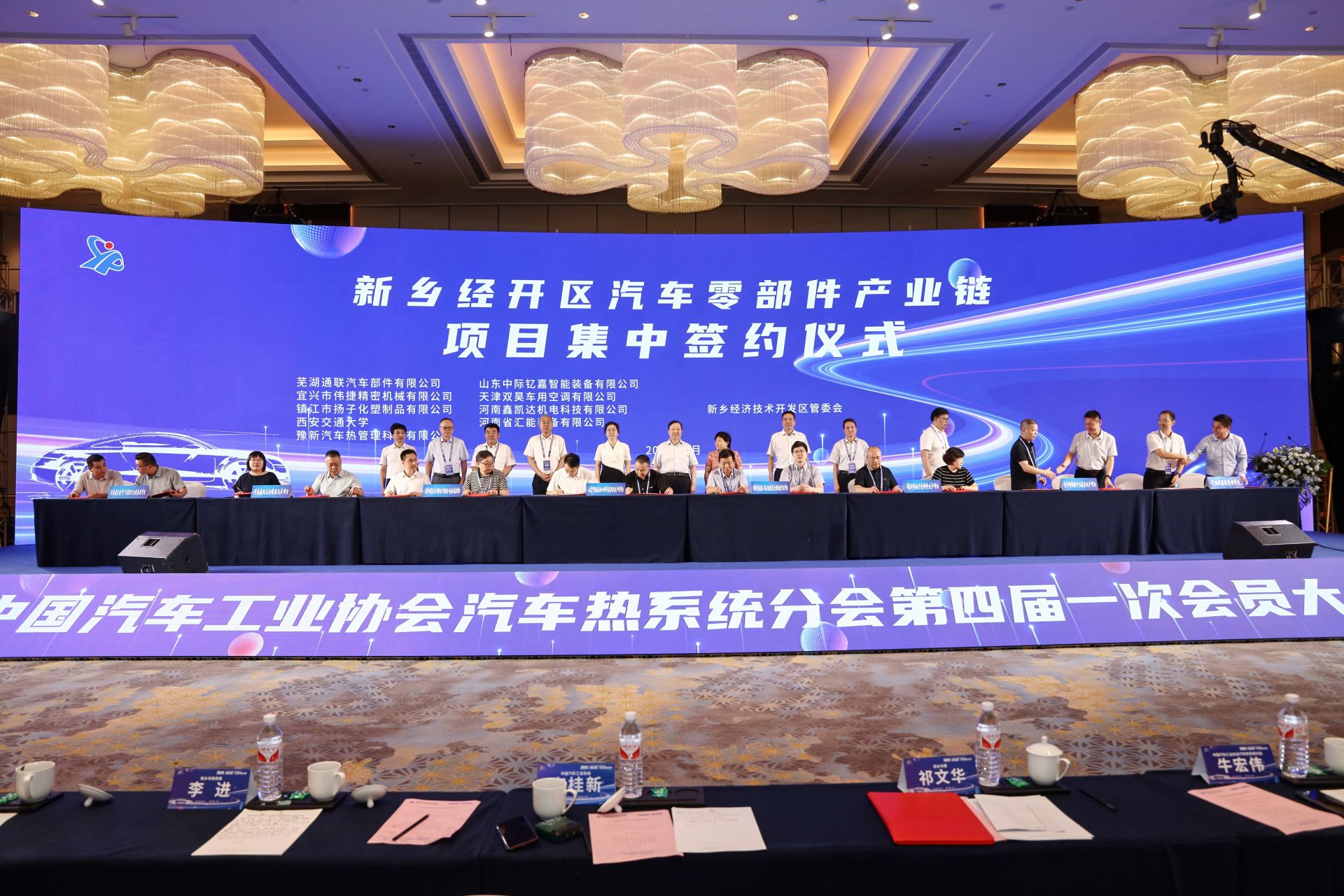 6月21日,中国汽车工业协会汽车热系统分会四届一次会员大会在新乡举行,与会143家会员单位代表及委托会员单位共同完成换届选举。中国汽车工业协会秘书长助理、会员工作部主任李桂新主持换届选举。“新乡经开区汽车零部件产业链项目集中签约仪式”同台举行,中国汽车工业协会、新乡市委及新乡开发区领导出席会议。