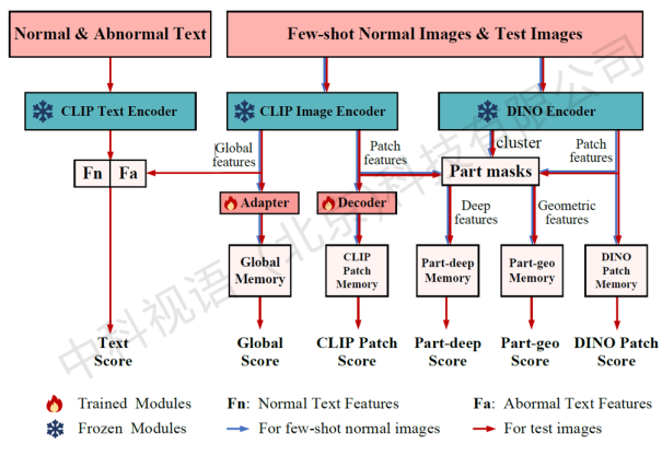 图像块异常检测专家模型通过比较测试图像的每个图像块和正常图像的每个图像块的内容,判断每个图像块是否为异常。在图像块异常检测专家模型的实现上,研究团队主要使用了他们在AAAI2024上发表的方法AnomalyGPT[2],使用大语言模型实现工业异常检测,在少样本异常检测方面具有显著效果。