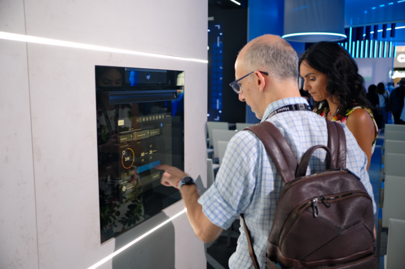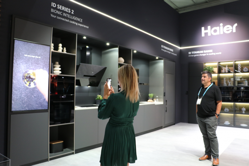 在围观现场的仿生厨房时,包含烤箱、嵌入式咖啡机、电磁灶等多款厨电产品,均凝聚了海尔厨电最新的全球领先科技。其中仿生烤箱更是通过视觉仿生、智能仿生、精准仿生解决了欧洲家庭对温度烹饪时间的需求。ID6系Titanium高端烤箱搭载Bionic仿生烹饪,在传统烤箱只是控制空气温度的基础上,升级可以精准控制食材温度的技术。在体验环节,观众亲眼目睹烤箱通过无线蓝牙探针,精确感知食物的温度,还通过内置摄像头持续观察食物的烹饪状态,确保完美烹饪。当食物出炉,香气四溢,在场观众不禁纷纷赞叹这来自海尔厨电带来的智能与便利。