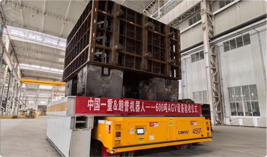 “没有最大,只有更大”。今年7月,朗誉机器人自主研制的600吨超重载AGV验收仪式,在酒泉一重西北能源高端装备制造基地隆重举行,再次刷新全球重载AGV单车载重纪录。
